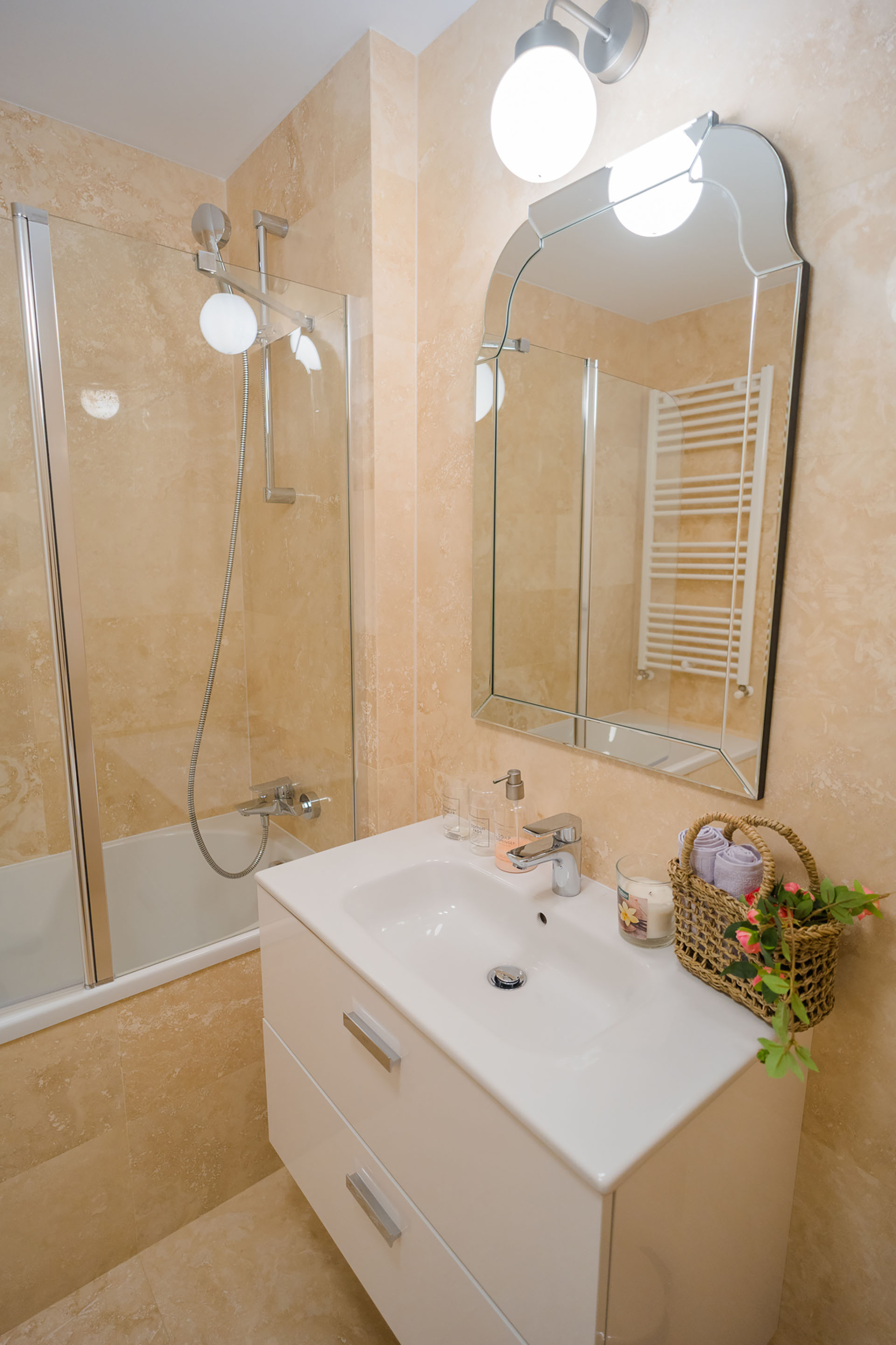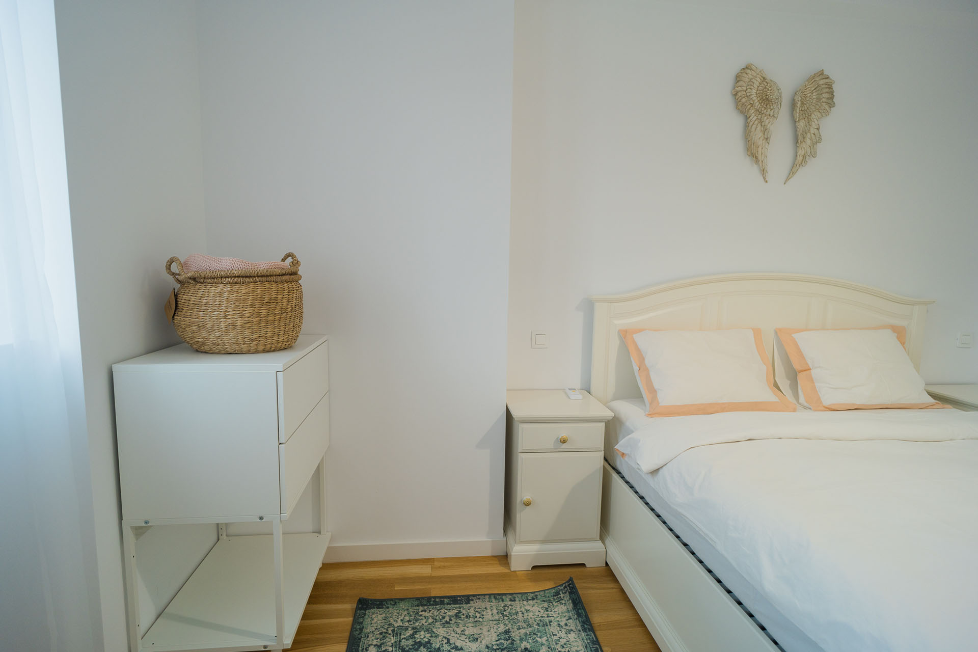 The apartment is located on the third floor in a recently built housing estate and accommodates up to 5 guests. The bedroom has a queen size bed (160x200) and is equipped with blackout curtains for a good quality sleep. we alse have an airbeb and couch.