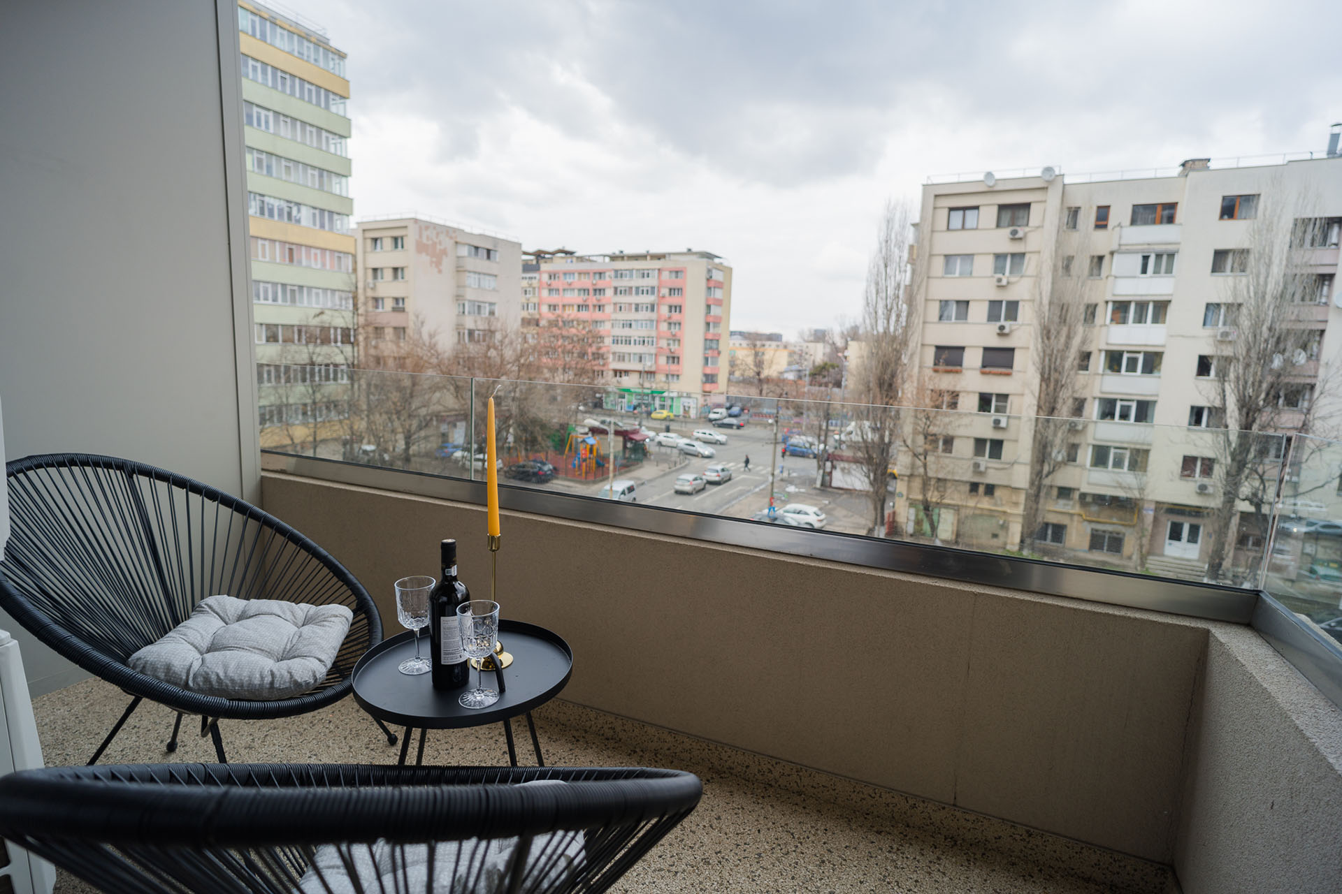 The terrace streches on the entire length of the living room where you can enjoy the city view and the sunset.