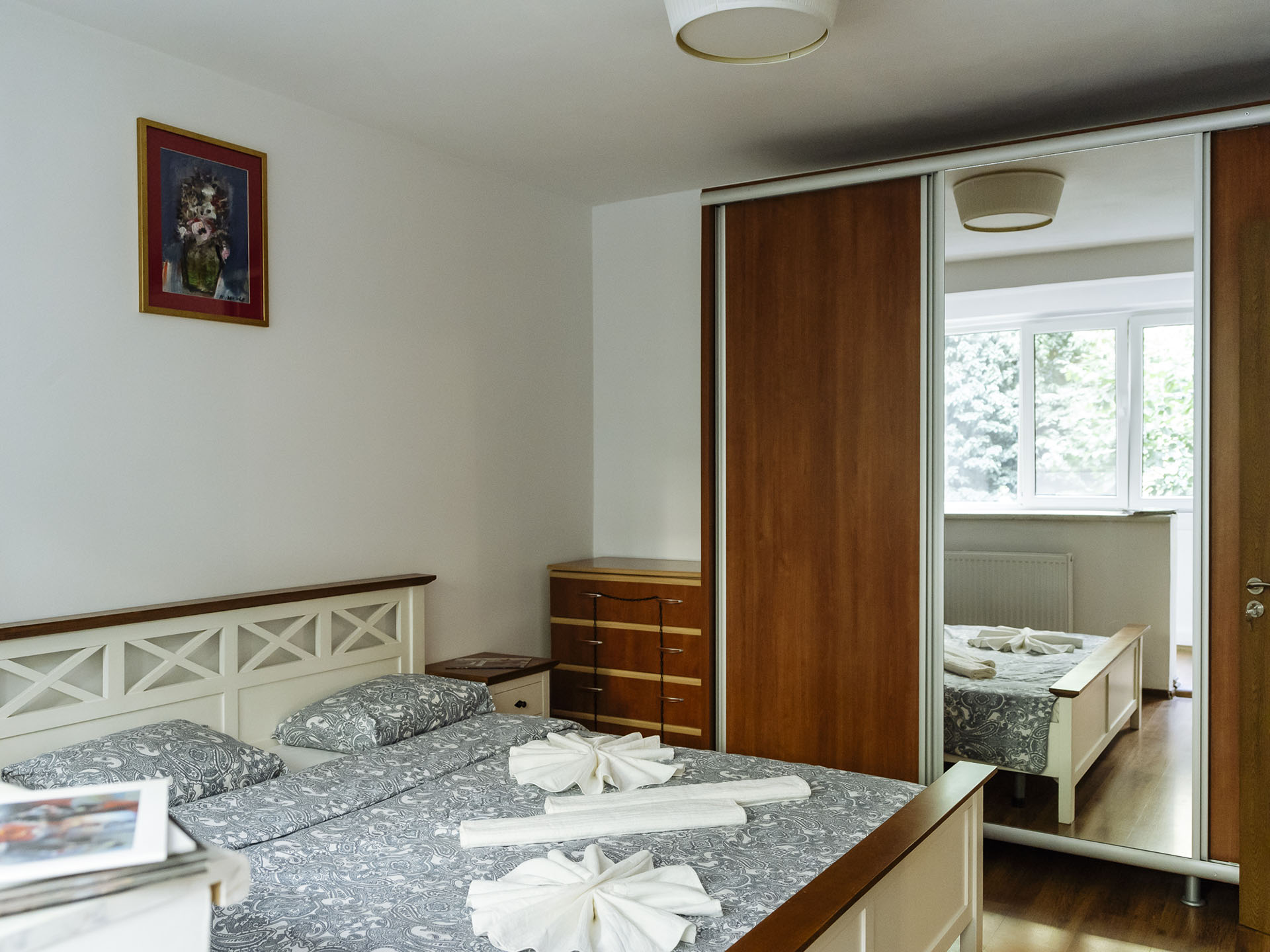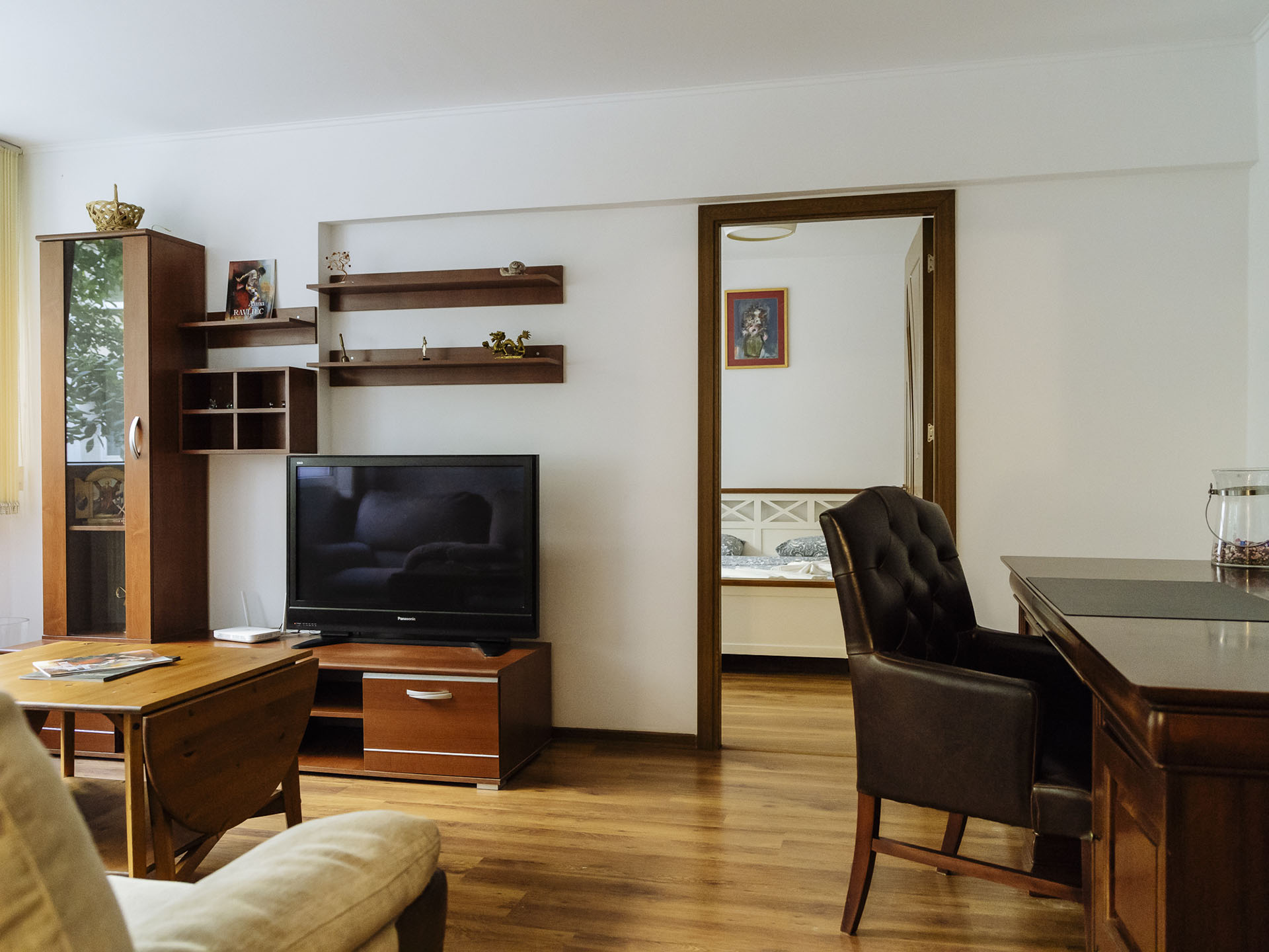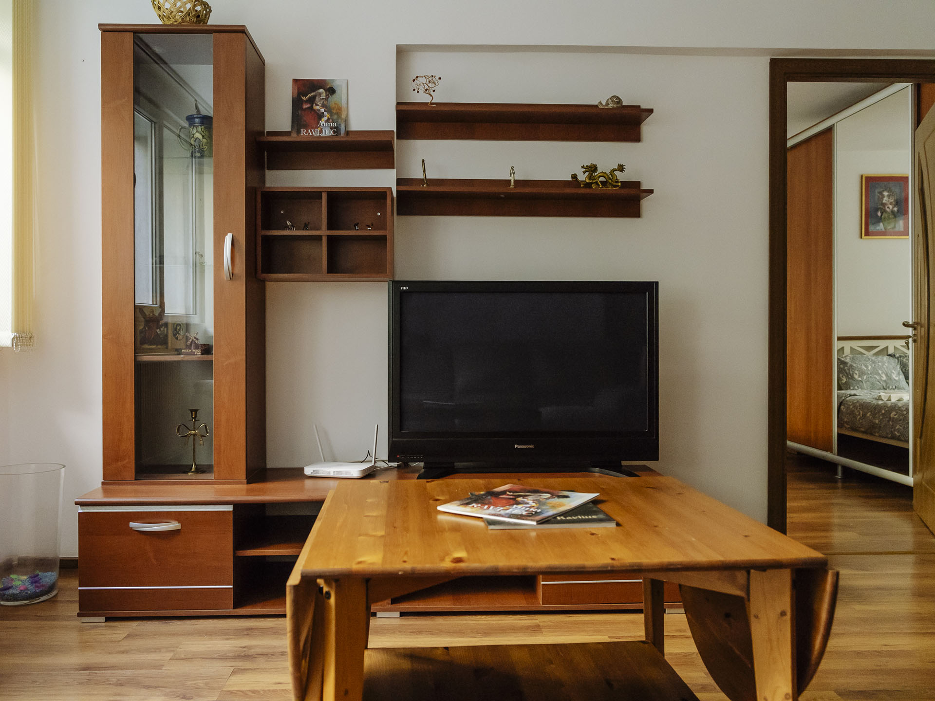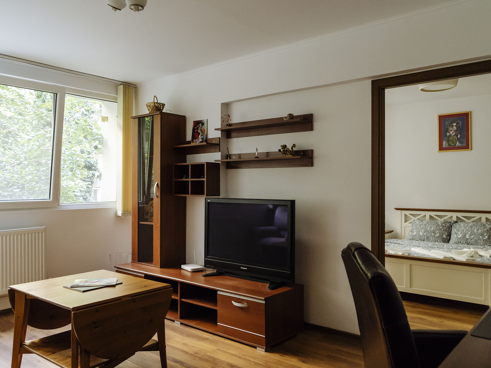 Located in the heart of Bucharest, in a building with a great history where actors, painters and artists lived, this apartment is perfect for a comeback in the bohemian era of Bucharest. The backyard is used for movie projections directly on the outside wall of the building. Also, the backyard is like a mini park with trees and benches, quite an unique feature in Bucharest. On the ground floor of the building are the art galleries Orizont. The flat has been restored keeping the old furniture.