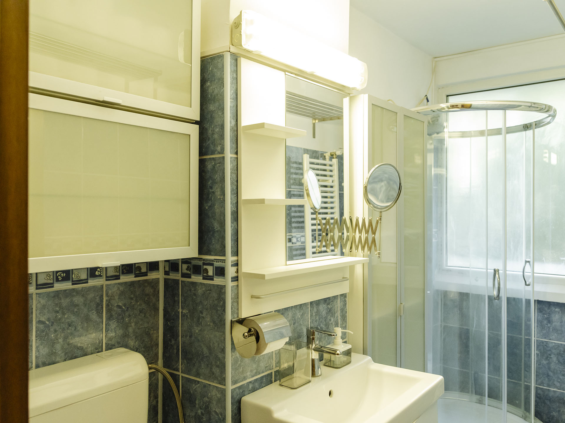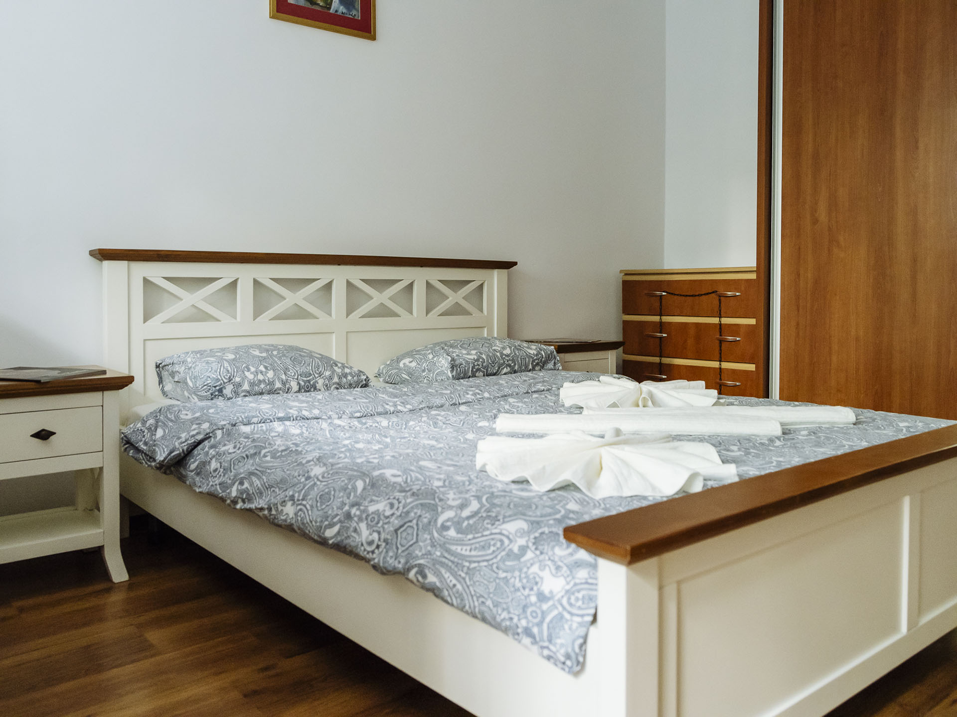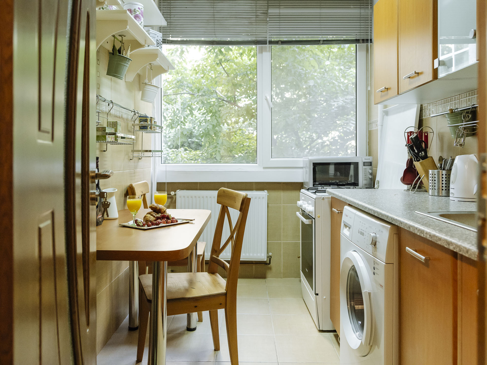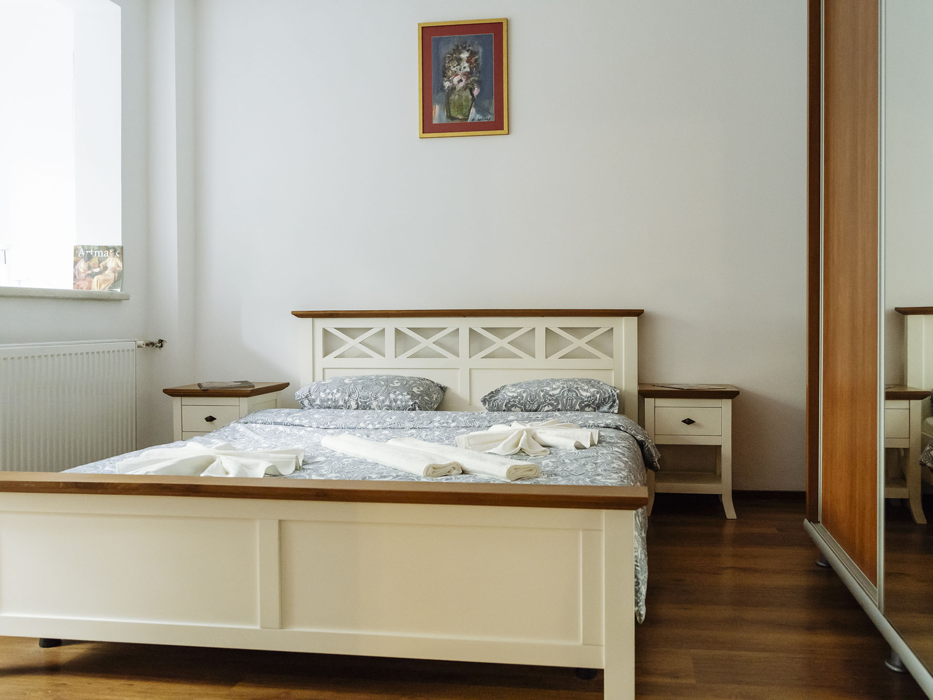 The apartment is located on the second floor and accommodates up to 4 guests. It features a well equipped kitchen, a living room with a very comfortable extendable sofa and a refurbished old working desk, a cozy bedroom with a queen size double bed and a bathroom. From the bedroom, one may enjoy the view of the backyard mini park.